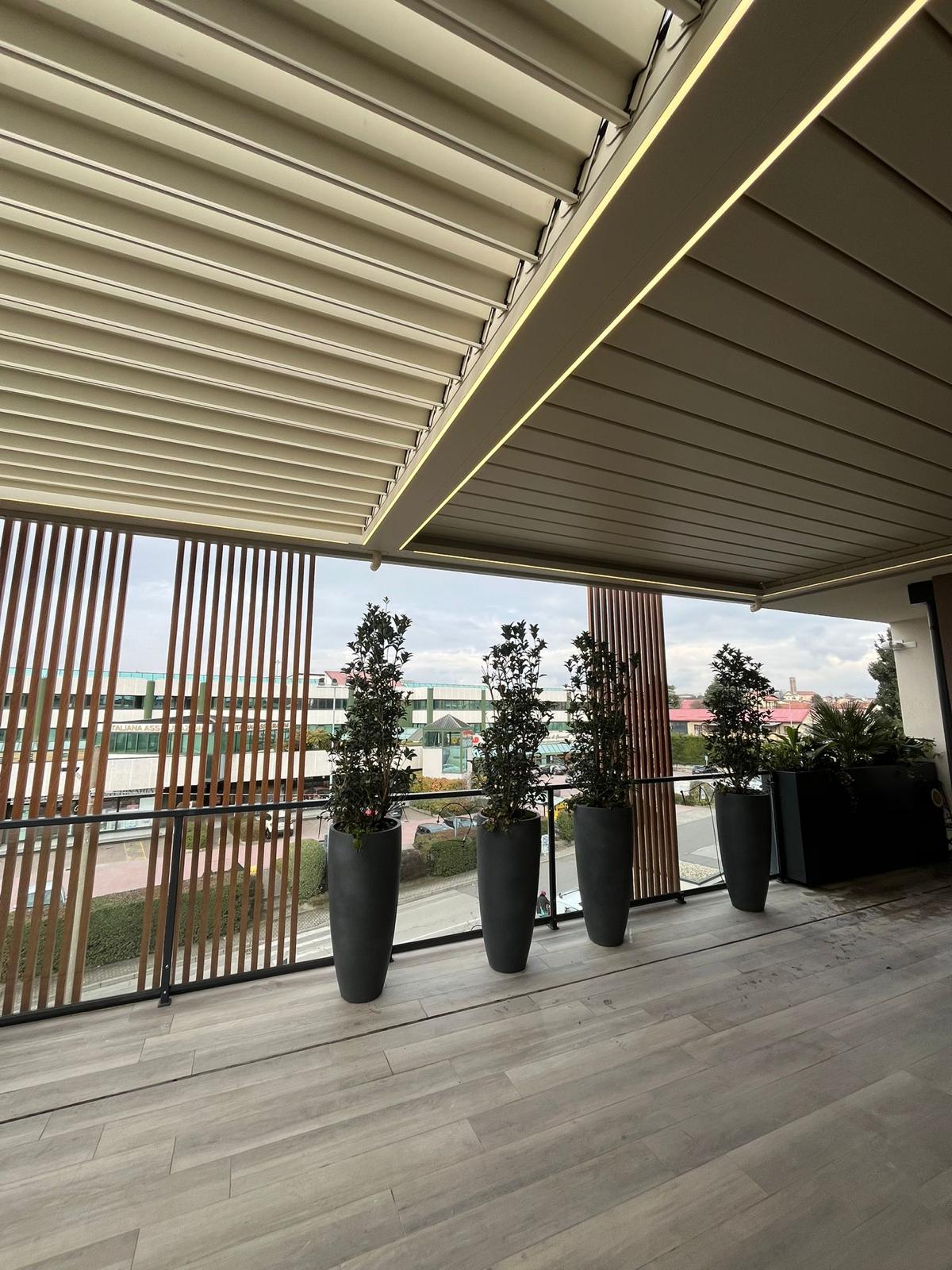 Pergole Pergola bioclimatica VISION a 2 moduli Avorio Sablè con lamelle orientabili e LED perimetrali