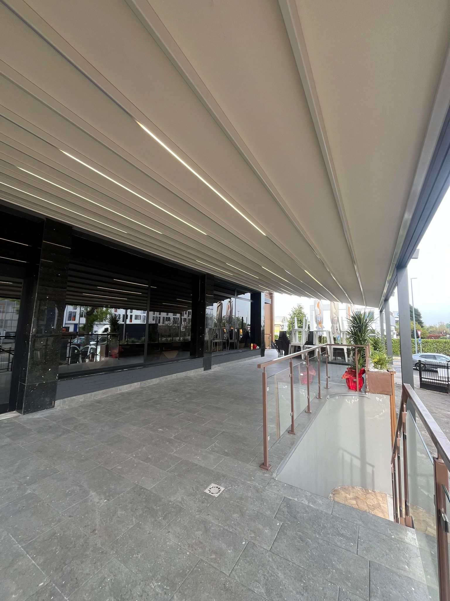 La pergola LEVEL dalle ampie dimensioni (larghezza 11.000 mm e profondità 6.000 mm) è progettata per coprire grandi spazi outdoor con eleganza e funzionalità. La struttura in raffinata finitura grigio ferro dona solidità e stile contemporaneo, mentre il telo in PVC Precontraint color avorio assicura elevata resistenza agli agenti atmosferici e un’ottima protezione solare. L’illuminazione con LED bianchi integrati crea un’atmosfera accogliente anche nelle ore serali, rendendo questa pergola la soluzione ideale per vivere al meglio giardini, terrazzi e spazi esterni tutto l’anno.